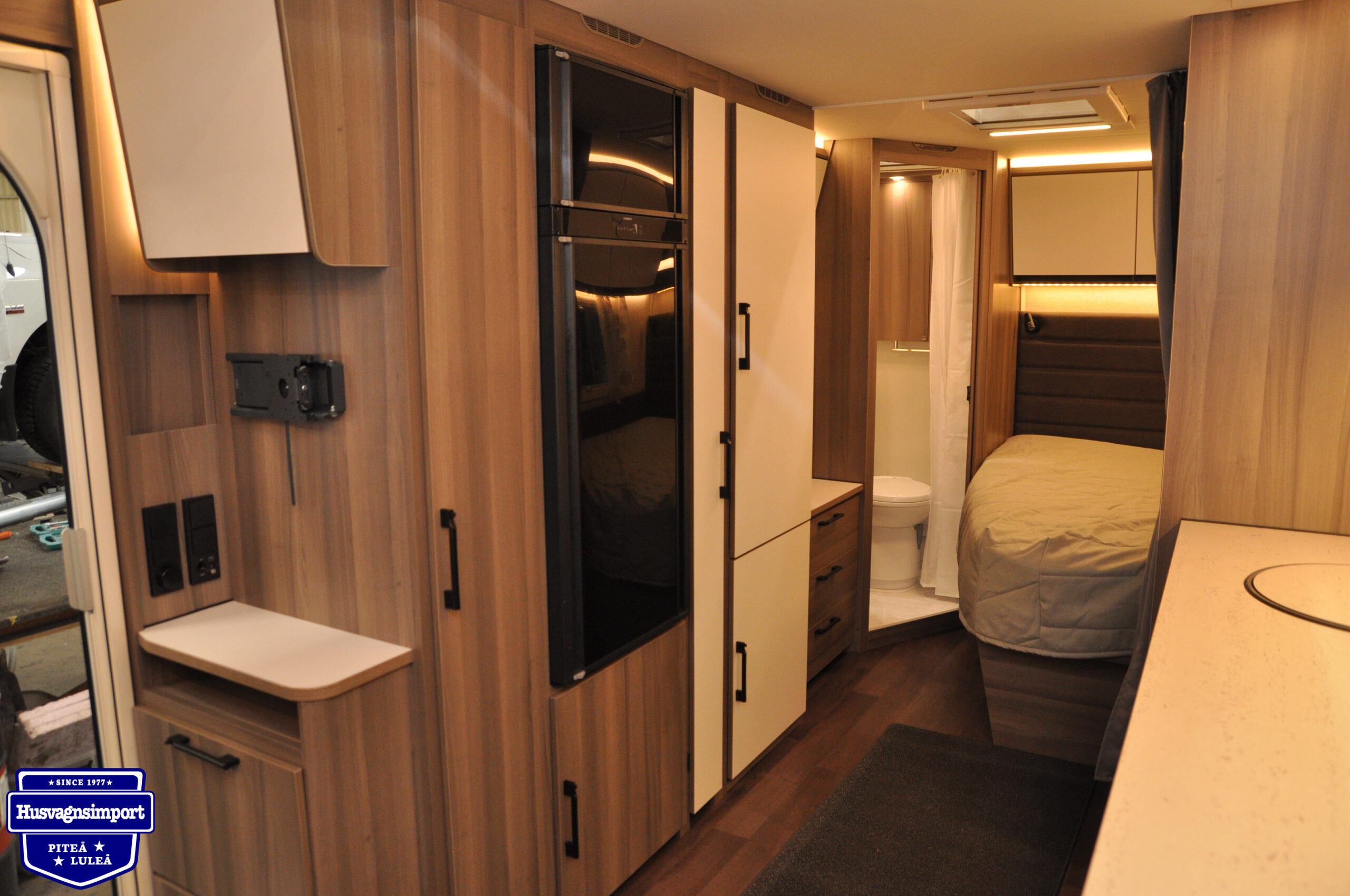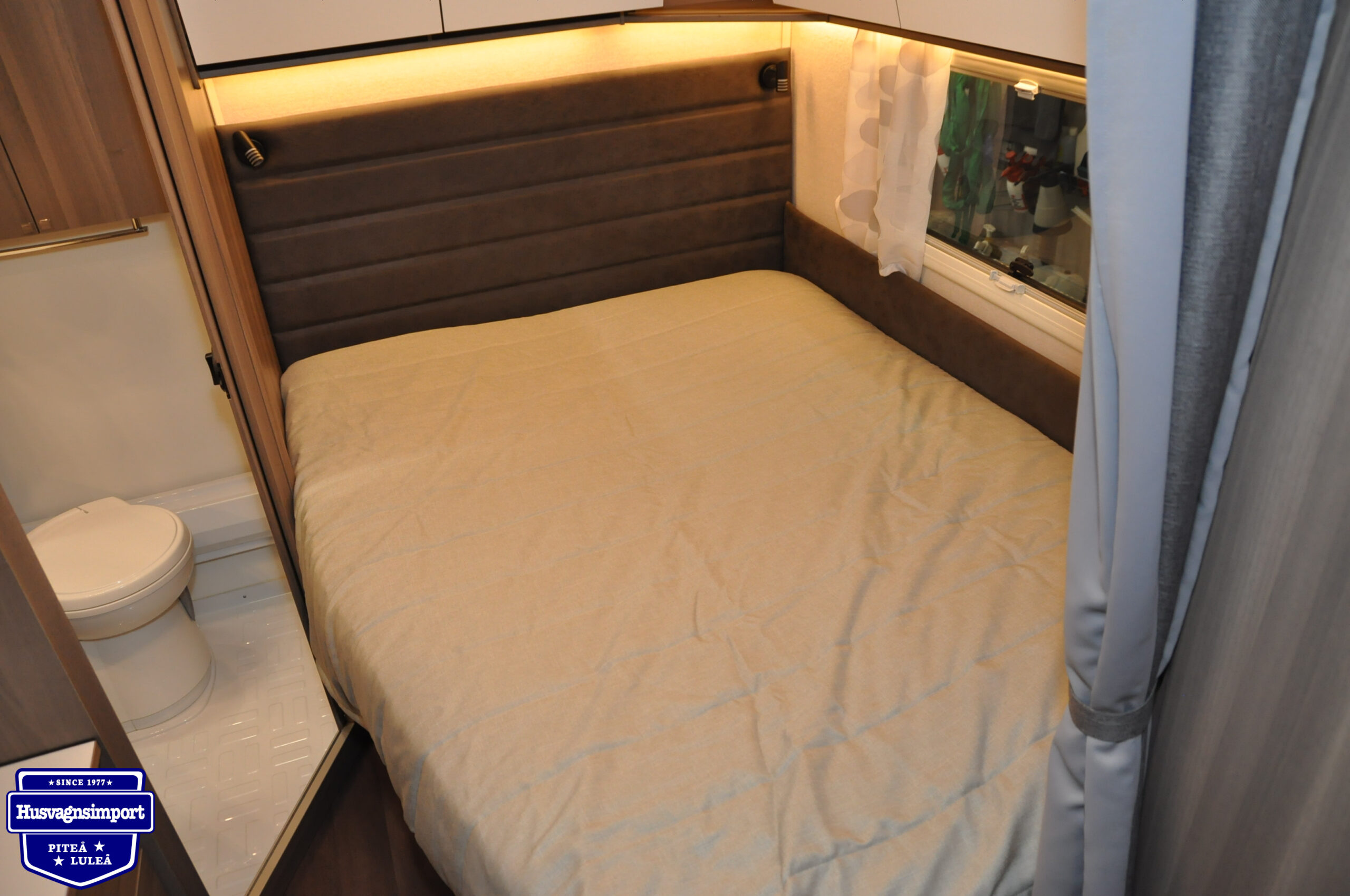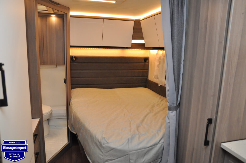 Väldigt fräsch XL-modell i 600-storleken. Fördelar blir mer avskilt sovrum med en garderob mellan köksbänk och säng, samt en byrå vid toaletten för mer naturligt ljus och lättare sortering med lådorna. Passa på att få en pärla!